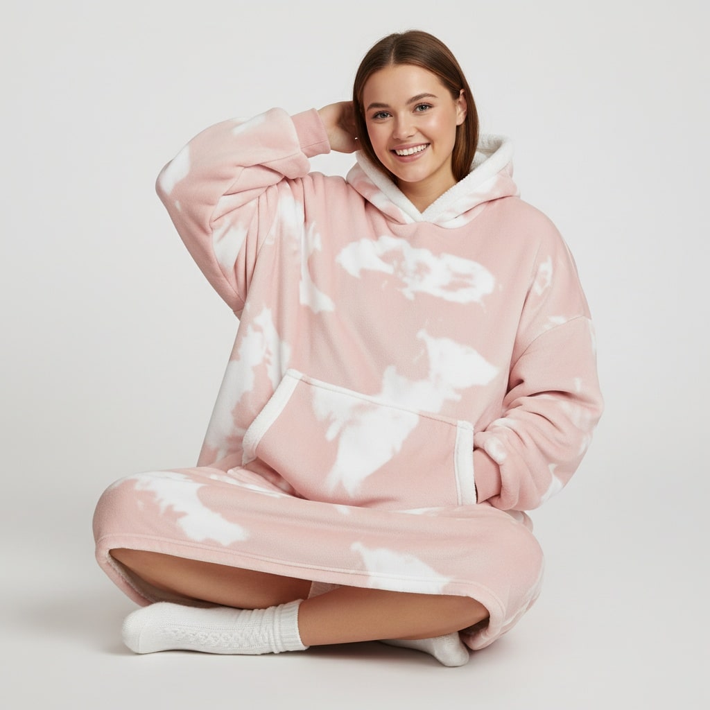 Ce modèle te plonge dans une bulle de tendresse grâce à sa couleur rose nuageuse et apaisante. Conçu en polaire de qualité, il garde la chaleur près de toi tout en restant léger et agréable à porter. Sa poche avant spacieuse devient ton petit refuge pour y glisser tes mains ou ton téléphone, et sa capuche moelleuse t’apporte un confort supplémentaire. Avec son design aérien, ce sweat plaid est l’allié parfait pour des moments cocooning remplis de douceur et de sérénité.