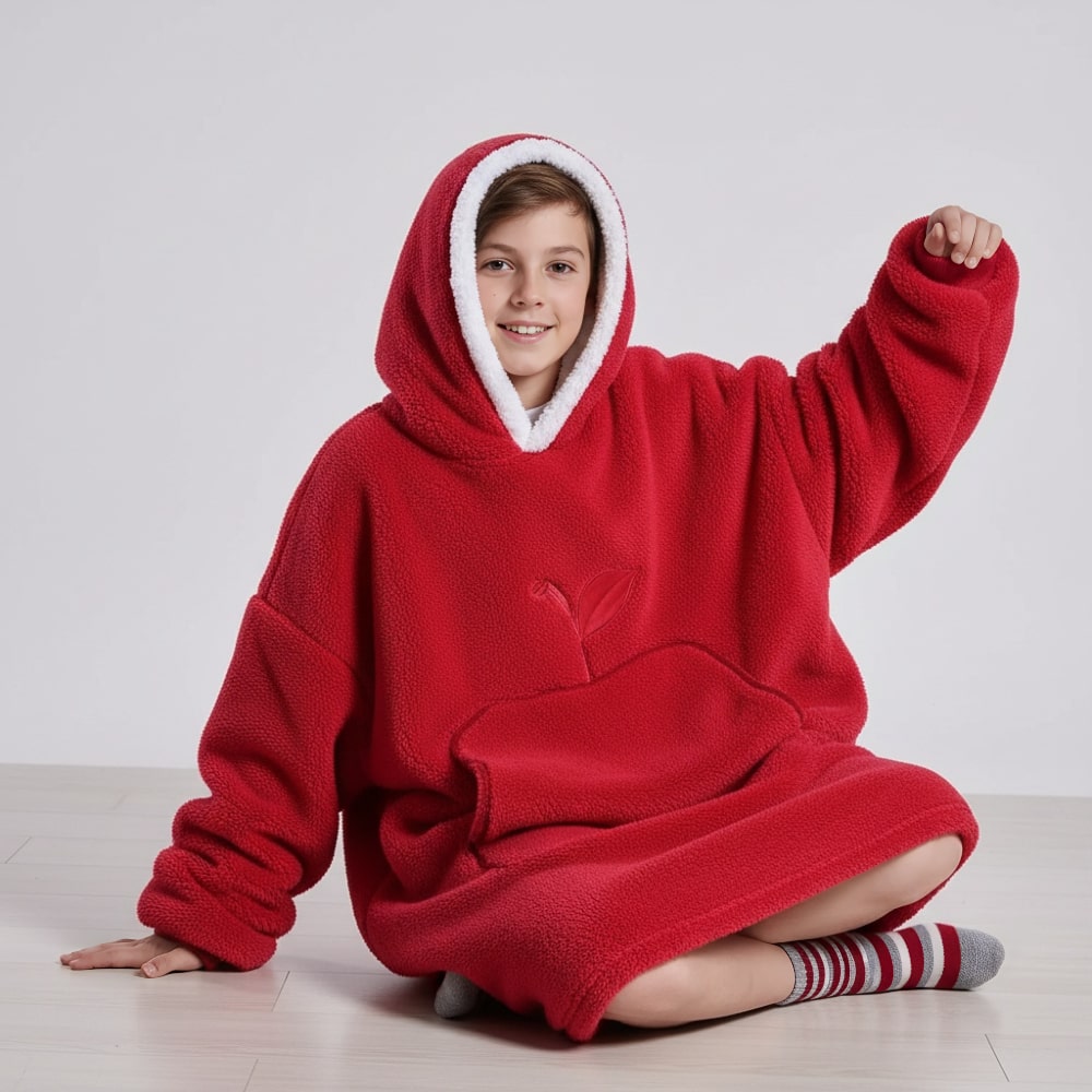 Ce pull pour enfant en polaire rouge réinvente le cocooning pour les plus jeunes. Doux, chaud et réconfortant, il accompagne les journées fraîches comme les soirées films en famille. Sa grande poche en forme de pomme, ludique et pratique, permet de glisser ses mains ou ses petits trésors. Avec sa capuche moelleuse et sa coupe ample, il devient vite le vêtement préféré des enfants qui aiment bouger tout en restant au chaud.