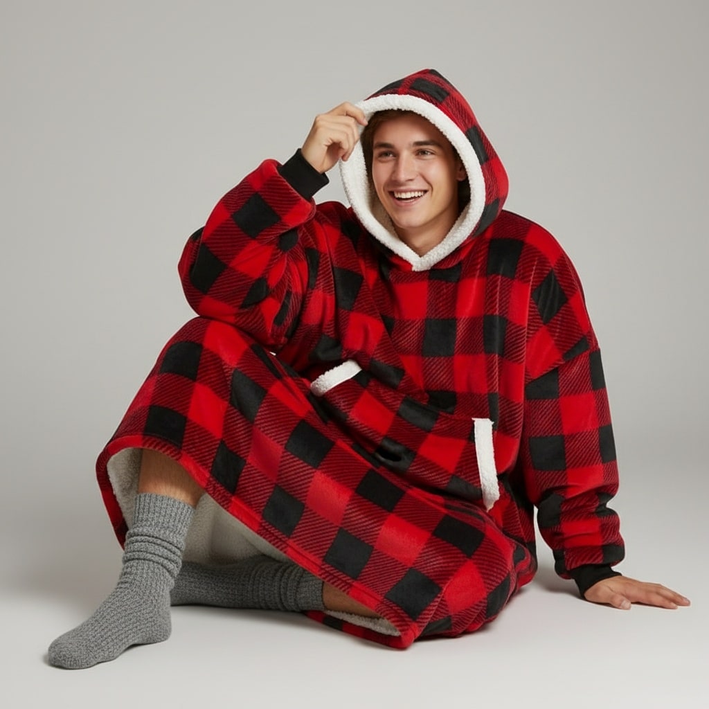 Plonge dans l’esprit cocooning avec ce modèle à carreaux écossais rouge et noir qui respire la chaleur et la convivialité. Sa coupe oversize enveloppe ton corps comme une couverture, idéale pour chiller devant un film ou bouquiner un dimanche pluvieux. Fabriqué en polaire flanelle à l’extérieur et doublé d’une polaire sherpa ultra-douce à l’intérieur, c’est le combo parfait pour rester bien au chaud sans sacrifier ton style. Avec sa grande poche pratique et son capuchon réconfortant, tu ne voudras plus le quitter !